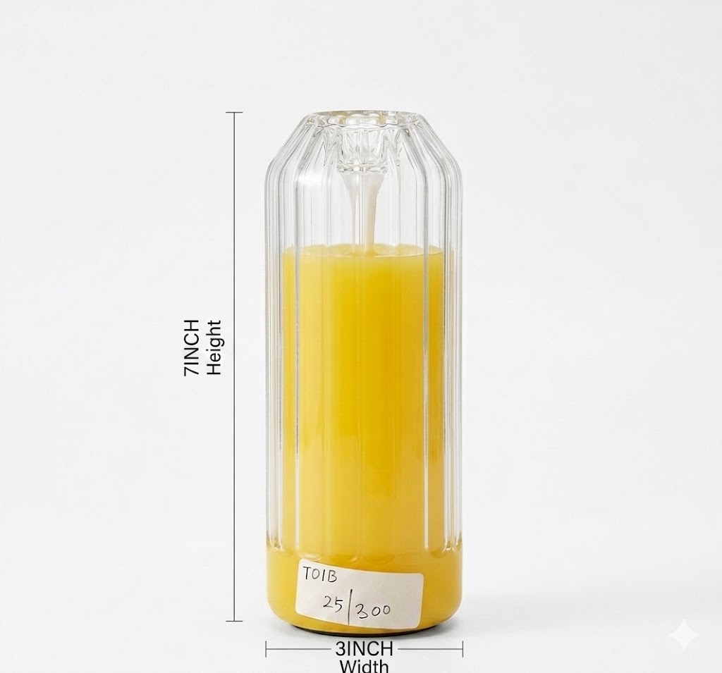 Crafted from high-quality transparent glass, the holder beautifully showcases the soft glow of the candle inside. The candle comes pre-filled with premium yellow wax, providing a calming and cozy atmosphere when lit. The central wick ensures an even burn, making it perfect for long-lasting use.