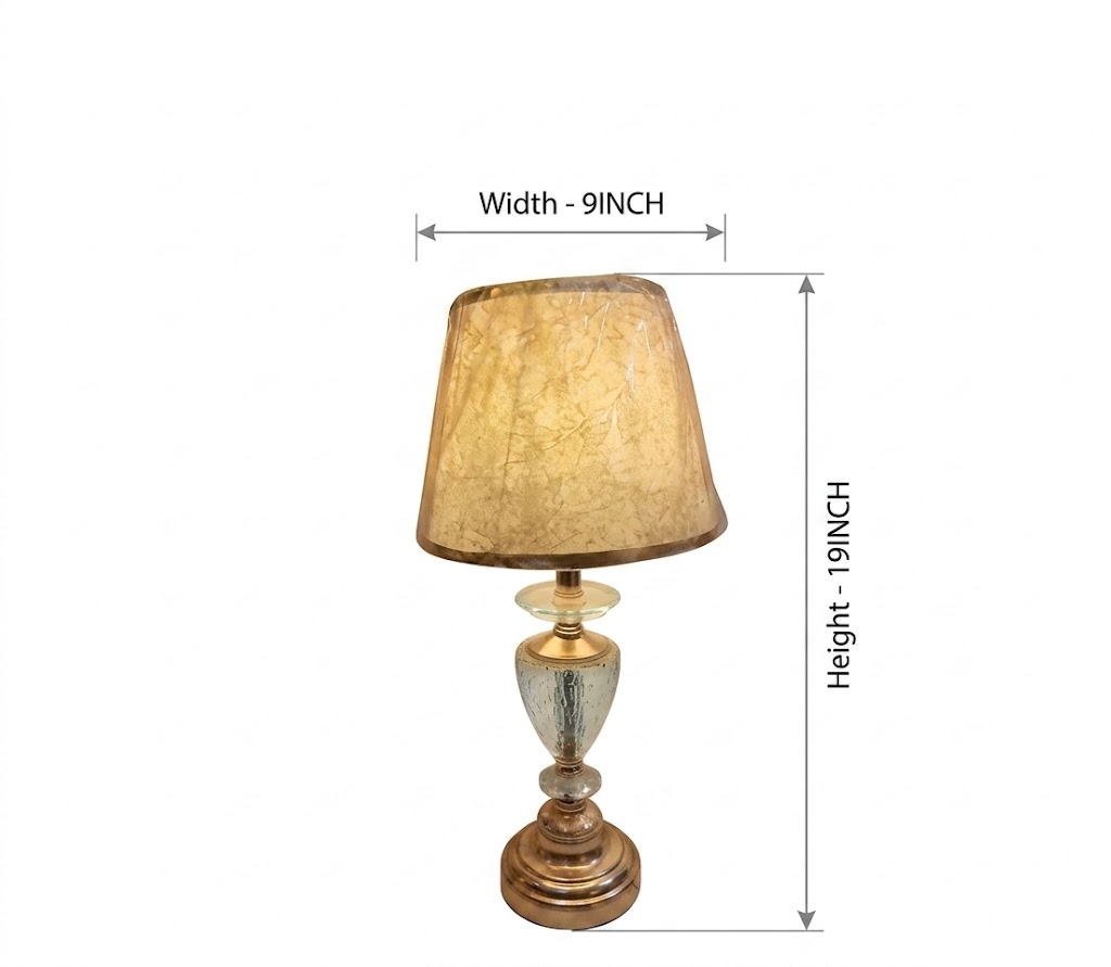 Bring timeless elegance to your home with this Classic Golden Glass Base Table Lamp, a perfect blend of sophistication and functionality. Standing at 19 inches in height and 9 inches in width, this lamp is designed to complement bedside tables, living room setups, or office desks with ease.