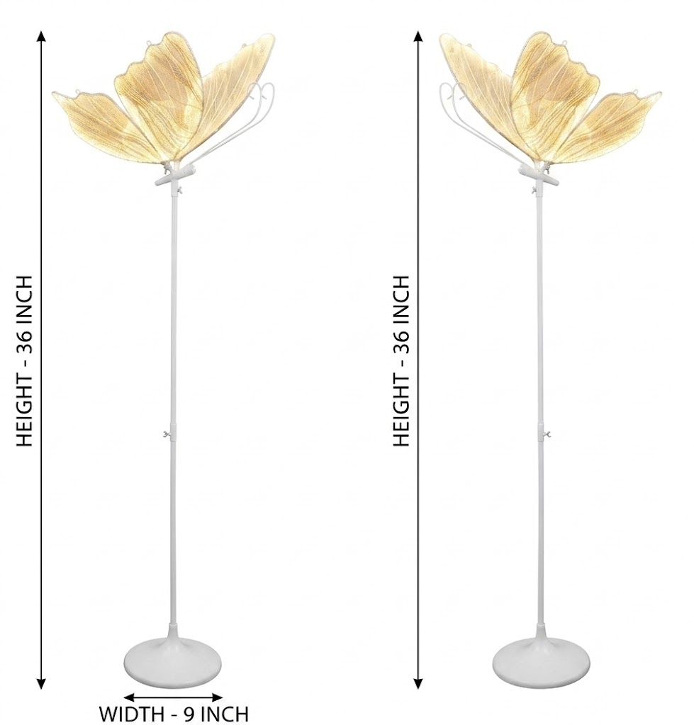 Transform your living space into a warm and artistic haven with this Elegant Butterfly Wing Floor Lamp. Standing at 36 inches in height with a compact 9-inch base width, this uniquely designed lamp combines functionality with eye-catching décor, making it a perfect statement piece for modern interiors.