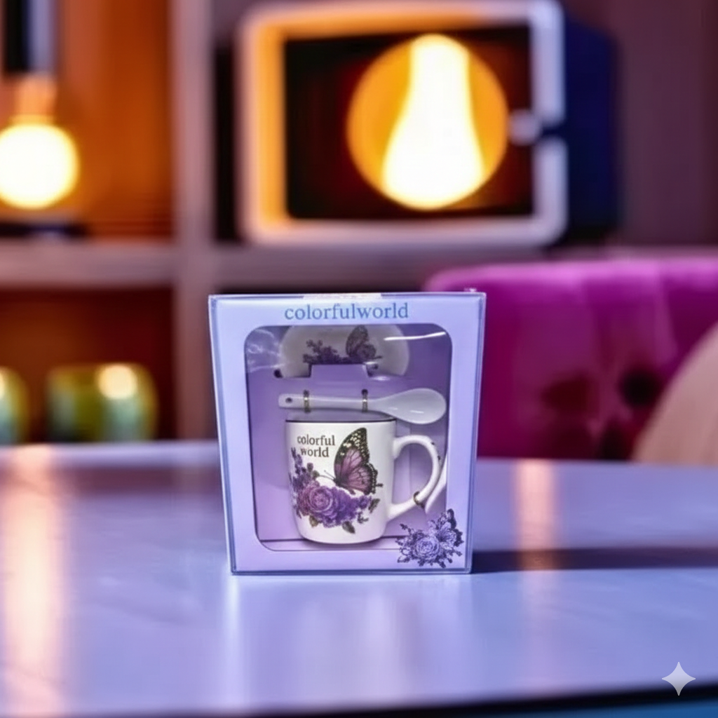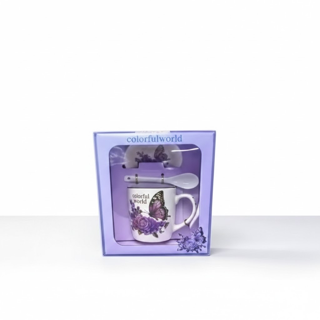 Add a touch of sophistication to your collection with this premium ceramic gift set. Featuring a beautifully detailed butterfly and floral motif in royal purple, this set is designed for those who appreciate fine aesthetics and high-quality craftsmanship.