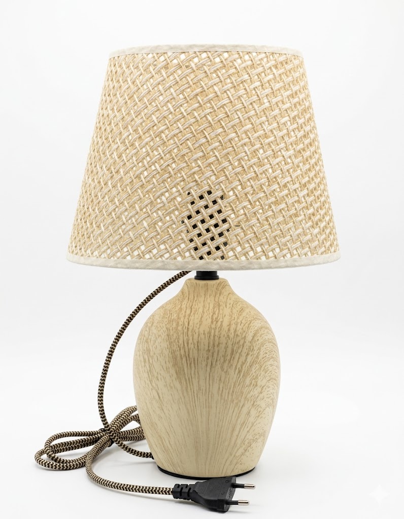 Bring warmth and earthy charm to your space with the Natural Woven Elegance Table Lamp. Designed with a beautifully textured base that mimics natural wood grain, this lamp adds a subtle yet sophisticated touch to any room. The highlight of the piece is its handcrafted-style woven lampshade, which diffuses light softly, creating a cozy and relaxing ambiance.