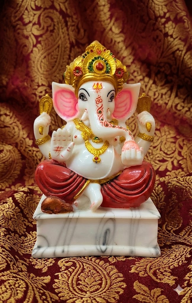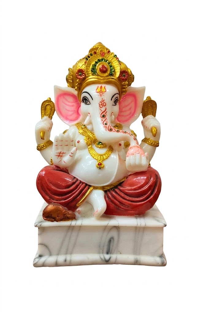 This beautifully crafted idol of Lord Ganesha showcases divine elegance and intricate artistry, making it a perfect addition to your home, office, or पूजा (prayer) space. Made from high-quality marble or marble-finish material, the idol features a smooth, glossy surface that enhances its premium look and feel.