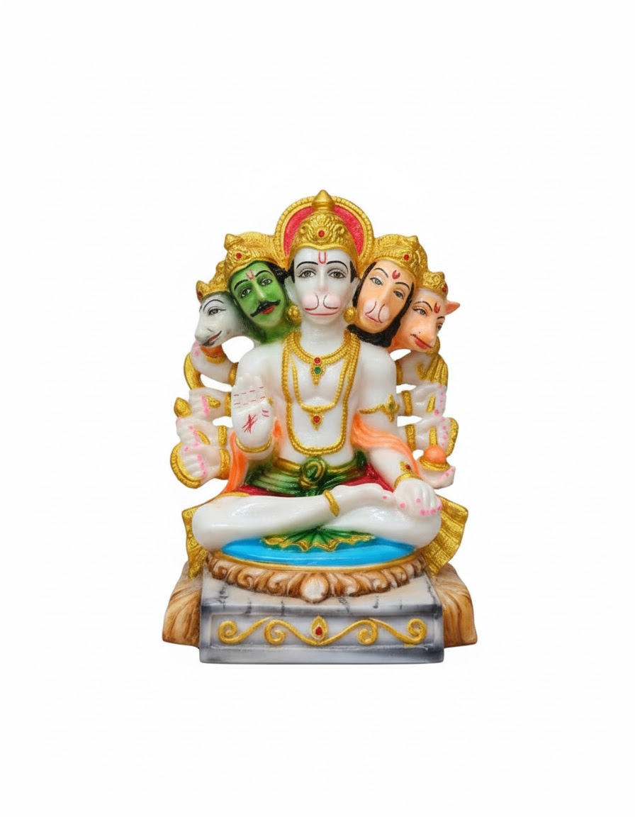 Made with fine detailing and vibrant colors, this statue is perfect for home temples,  rooms, offices, and spiritual décor. The divine presence of Panchmukhi Hanuman is believed to remove negative energy and bring peace, prosperity, and positivity to the surroundings.