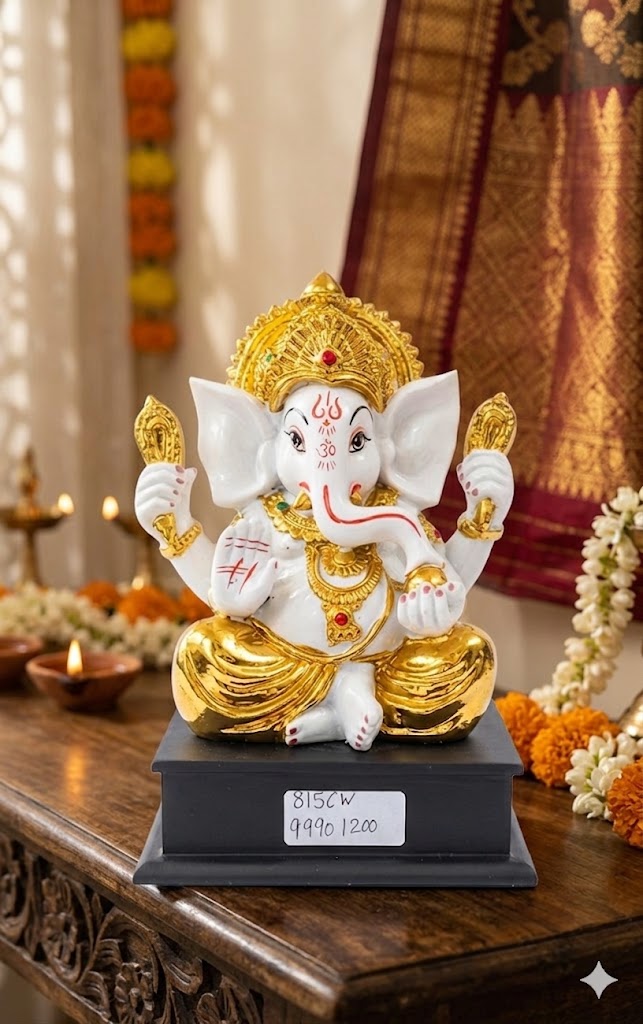 Bring home positivity, prosperity, and divine blessings with this beautifully crafted Lord Ganesha idol. Designed in an elegant combination of pure white and rich gold accents, this idol reflects peace, wisdom, and success—qualities that Lord Ganesha symbolizes.