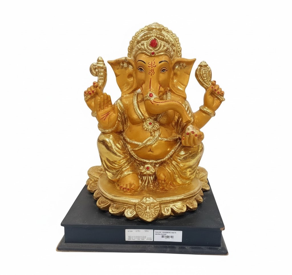This exquisite Golden Lord Ganesha idol beautifully represents the remover of obstacles and the harbinger of wisdom, prosperity, and success. Seated in a calm and divine posture, Lord Ganesha is depicted with intricate detailing, holding symbolic elements in his hands that signify protection, blessings, and abundance.