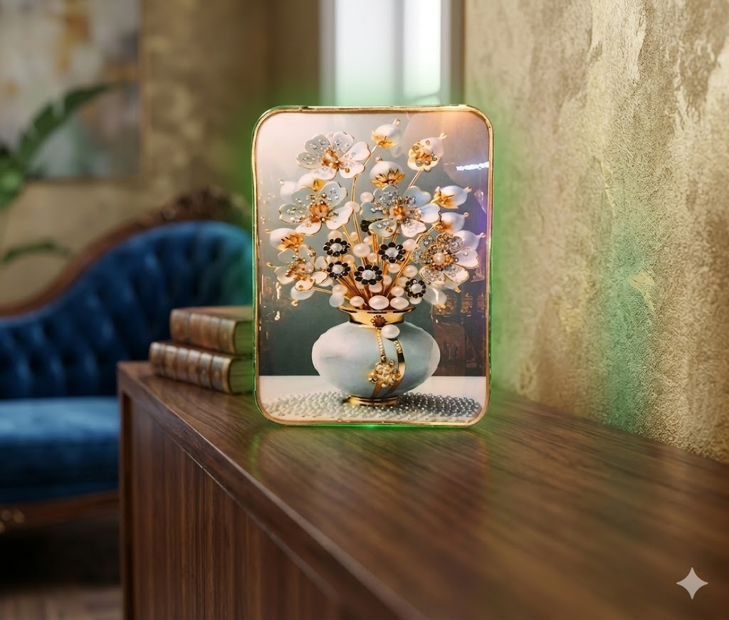 Add a touch of sophistication and charm to your living space with this beautifully crafted Elegant Floral Resin Wall Frame. Designed with a graceful blend of artistry and modern aesthetics, this decorative piece features a delicate arrangement of blooming flowers set in a stylish vase, all intricately detailed with beadwork and gold-toned accents.
