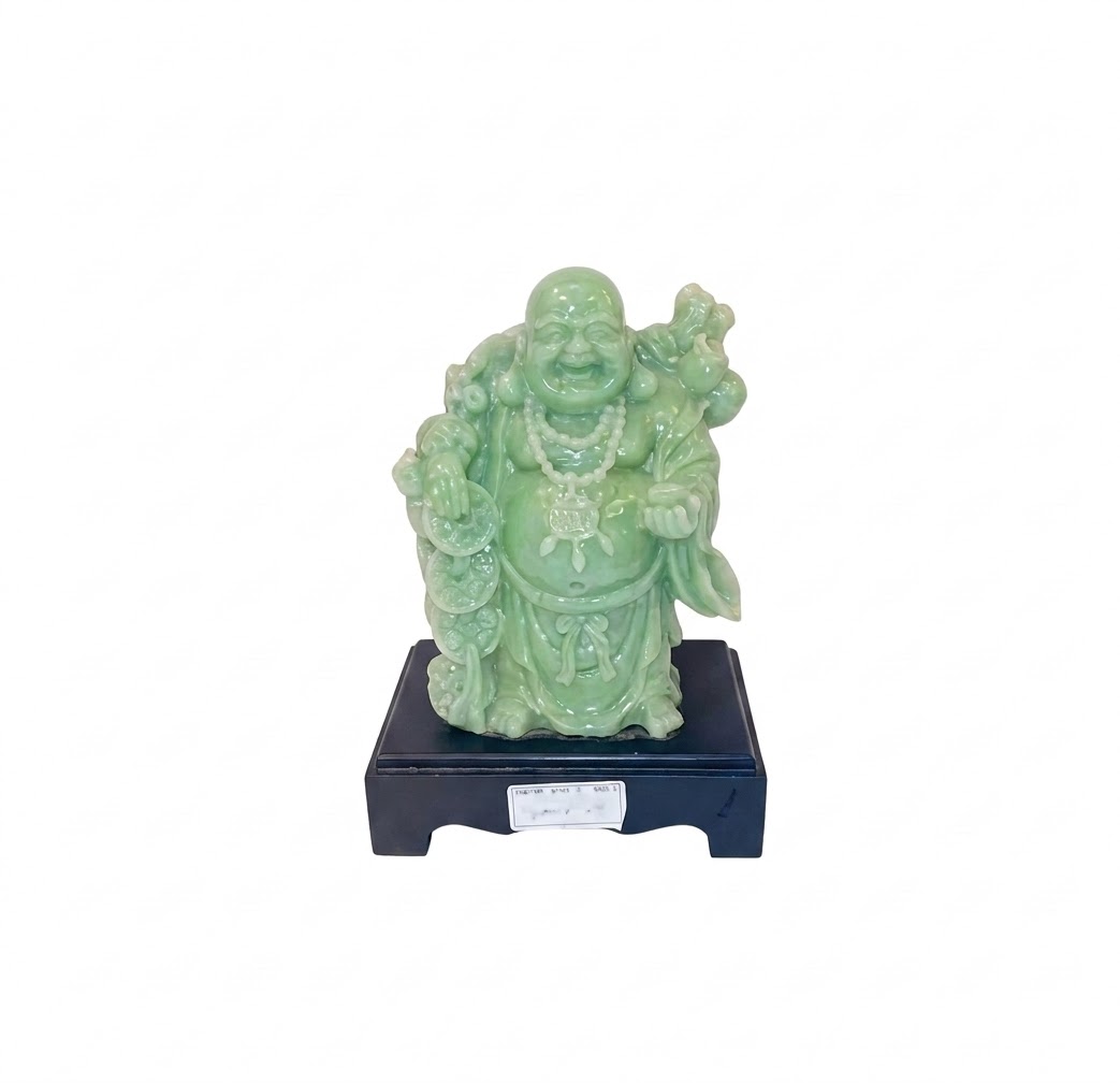 Be the first to review “Green 1004 ( Jade-Finish Laughing Buddha on Decorative Pedestal ) Height-22 cm Width-16 cm”