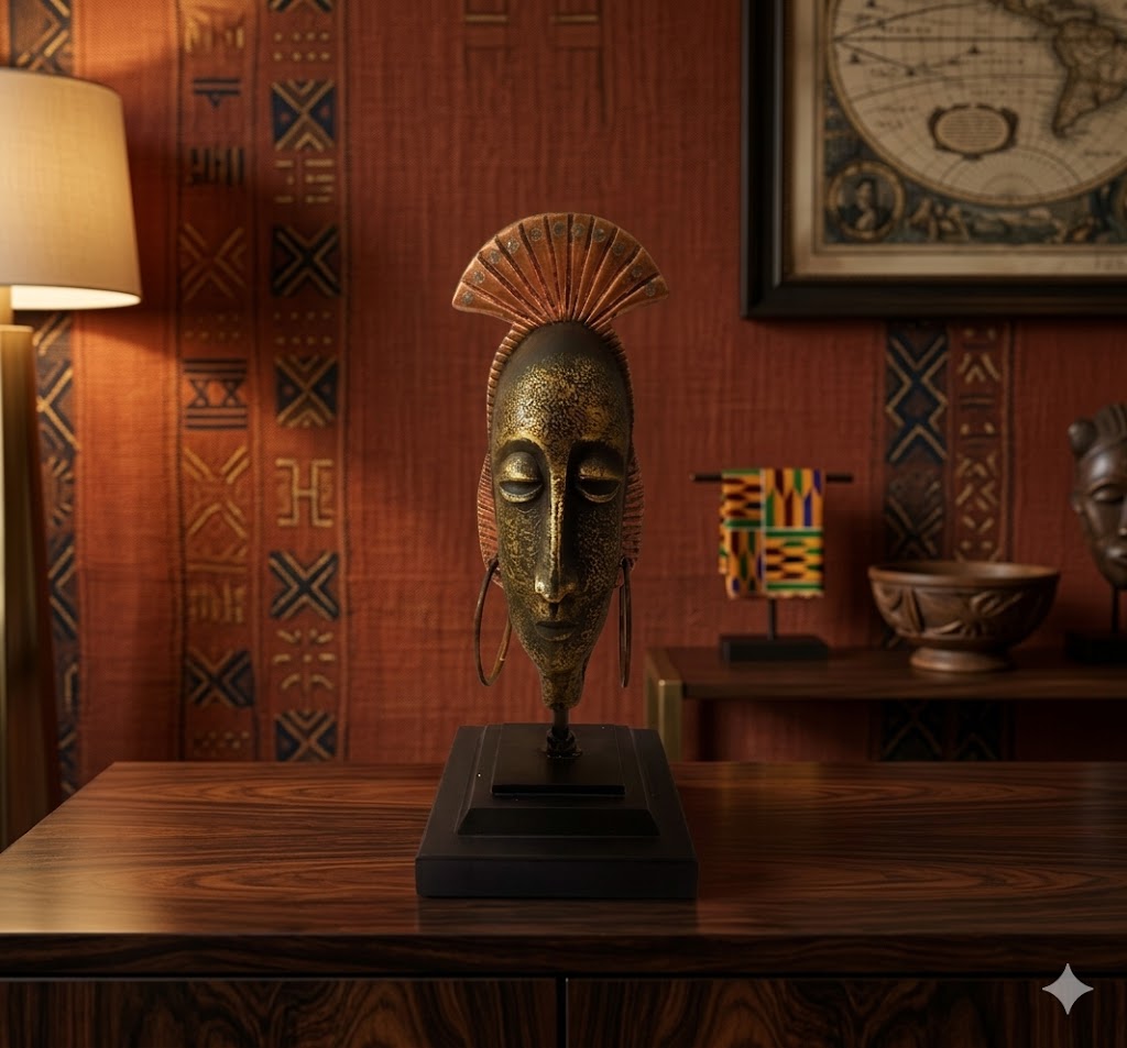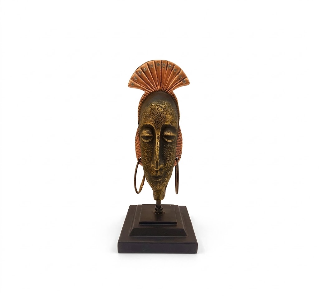 Add a touch of artistic charm and cultural sophistication to your space with this beautifully designed Tribal Elegance Abstract Face Sculpture. Inspired by traditional tribal art forms, this unique décor piece features a stylized elongated face with closed eyes, symbolizing peace, introspection, and inner balance. The intricate detailing on the headpiece and the large circular earrings enhance its ethnic appeal, making it a standout decorative accent.