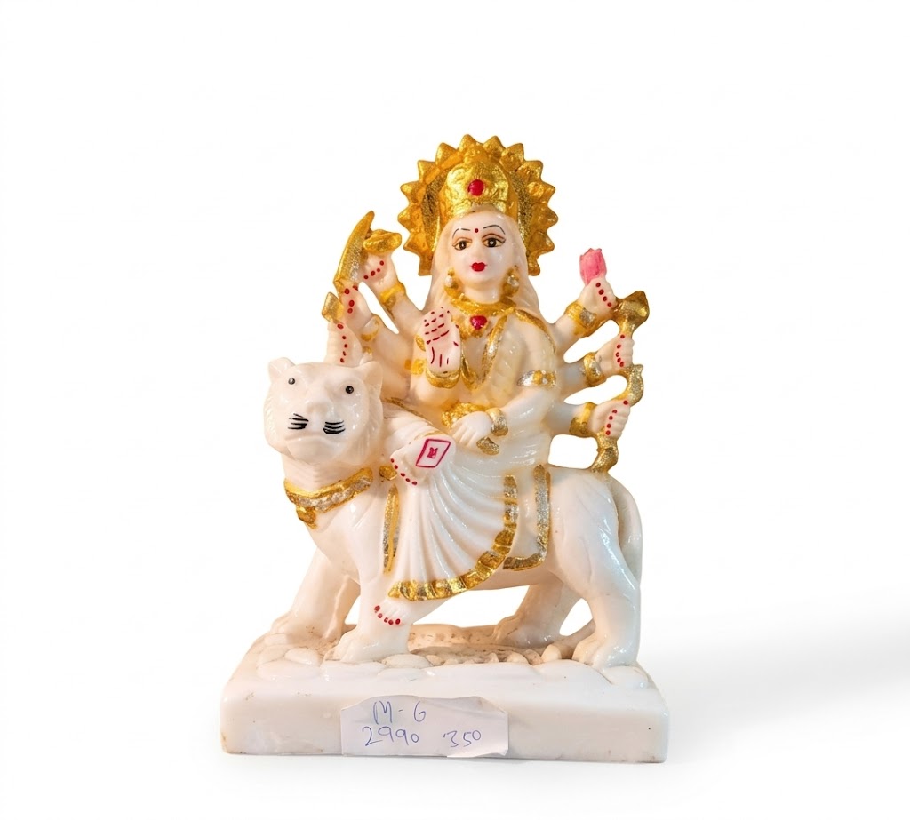 Be the first to review “M-6 ( Divine White Maa Durga on Lion Idol ) Height-7 INCH | Width-5 INCH”