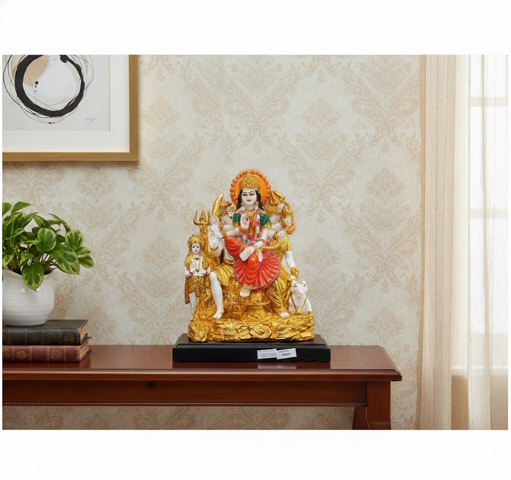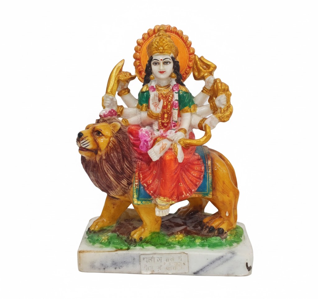 This is a beautifully detailed idol representing Mata Durga (Sherawali), a central figure in Hindu tradition symbolizing strength, protection, and divine motherhood.