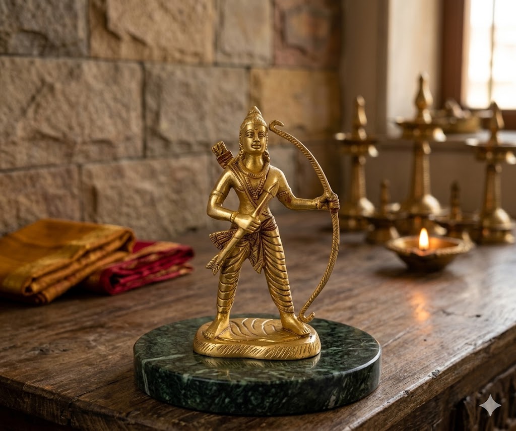 This idol is not just a decorative piece but also a symbol of faith and protection. It is believed to bring harmony, courage, and positive energy into the surroundings. Perfect for gifting during festivals, housewarming ceremonies, or special occasions, this Lord Rama statue serves as a meaningful token of blessings and devotion.