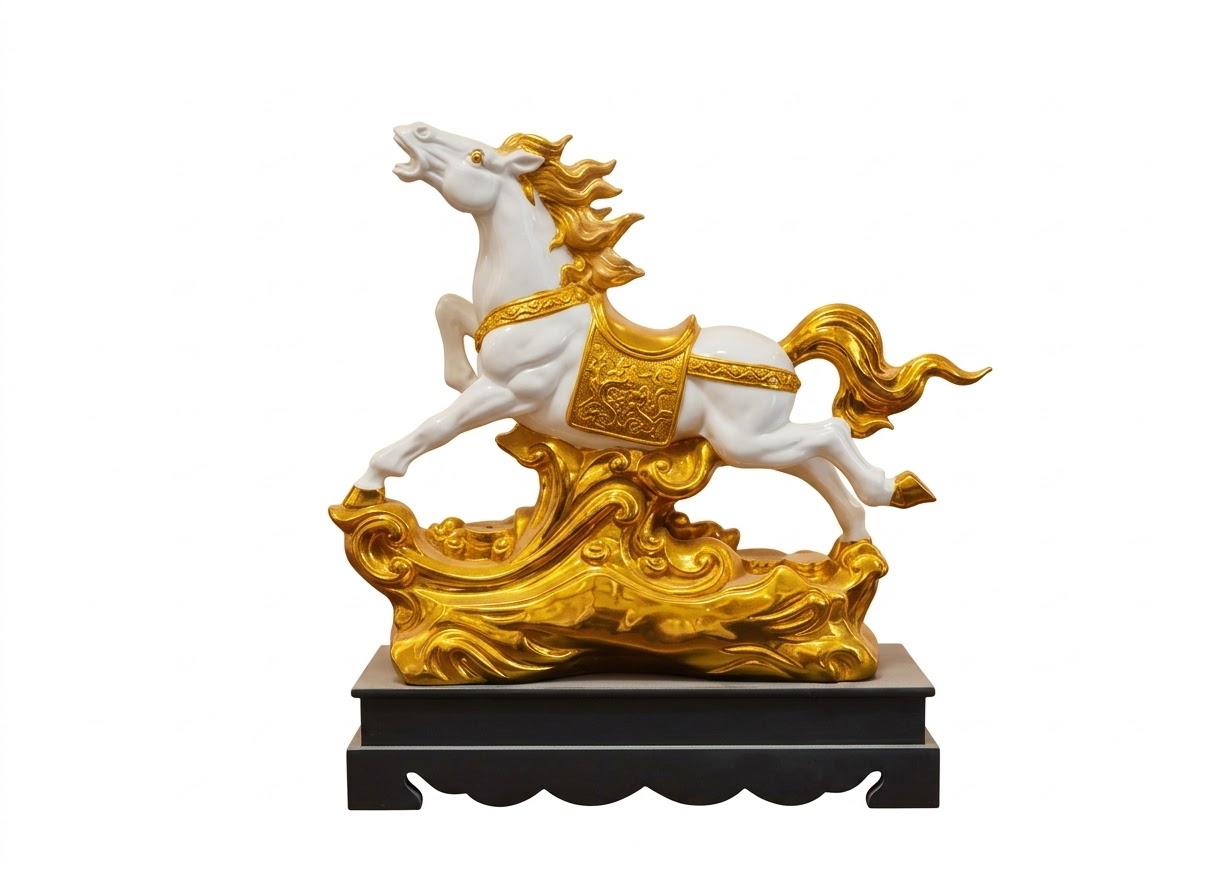 Add a touch of luxury and power to your space with this stunning Royal Golden Galloping Horse Showpiece. Designed with exquisite detailing, this elegant décor piece features a majestic white horse in motion, beautifully accented with rich golden carvings that symbolize strength, success, and prosperity.