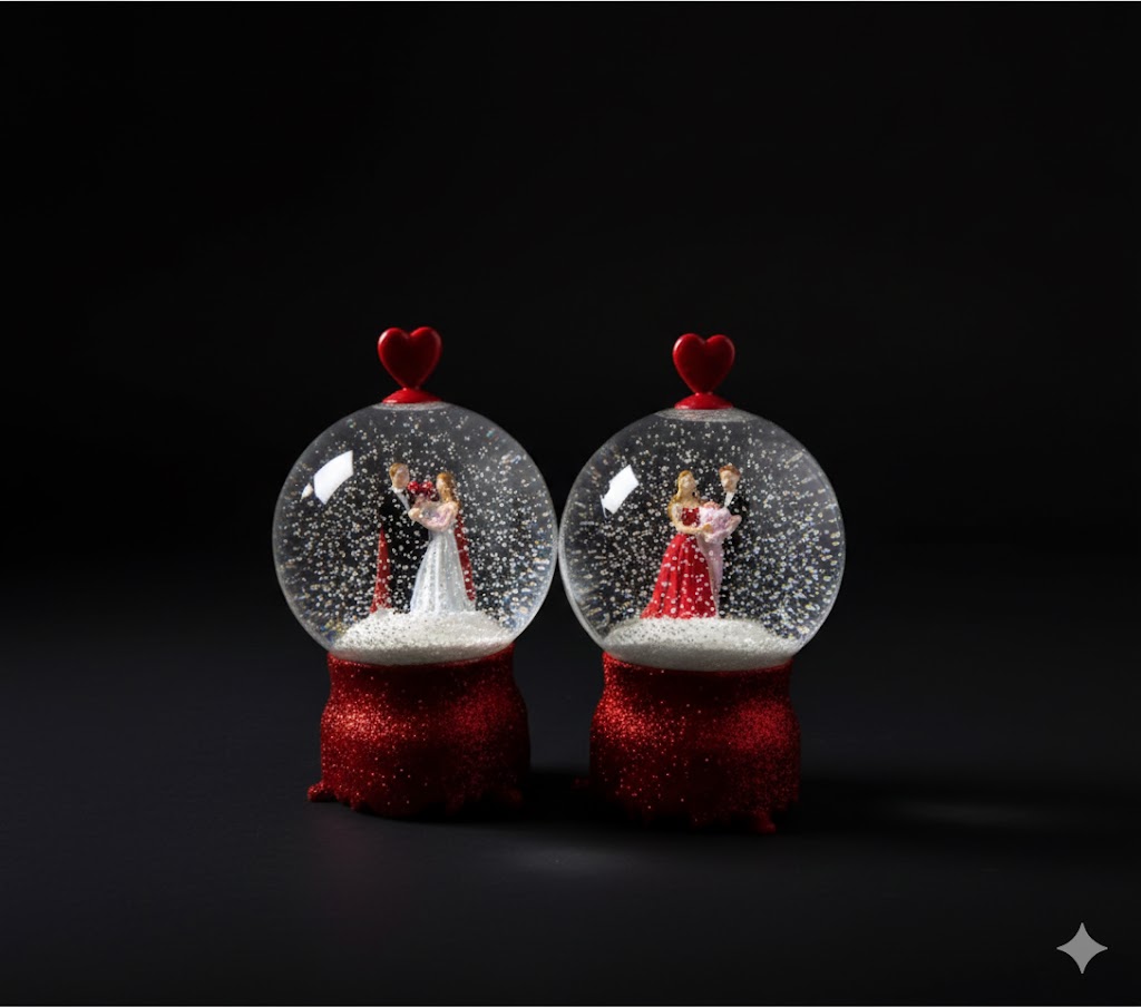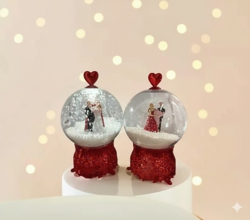 This elegant snow globe is a timeless keepsake designed to capture the essence of love and togetherness. Its classic aesthetic and premium finish make it a perfect addition to any home decor or a thoughtful gift for someone special.